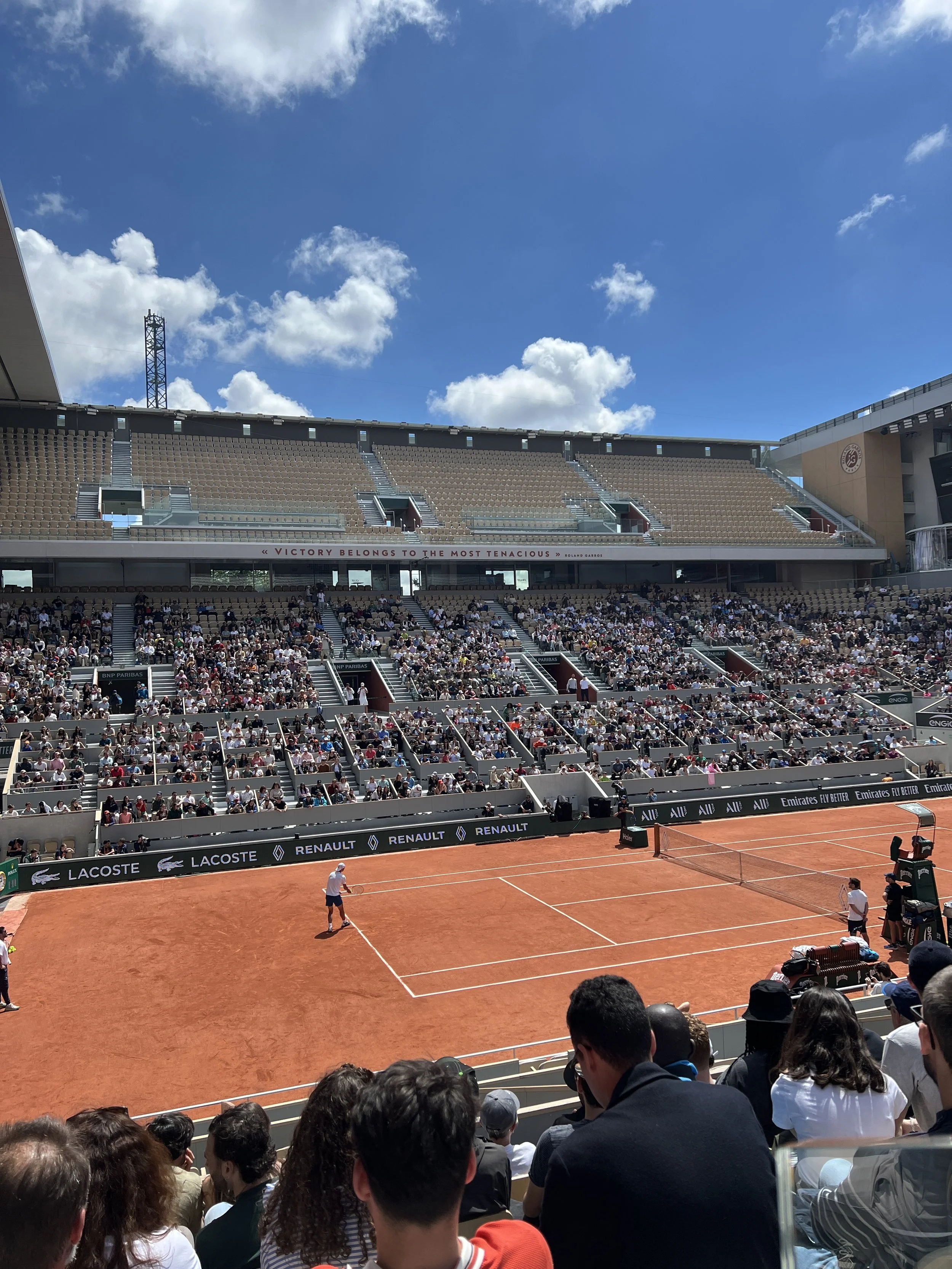 On Friday at noon, after a fast 4-hour train ride on the TGV, we heard the speakers say “Bienvenue à Paris”. Leandro’s first match was going to be played on Tuesday, so we spent four days practicing either on the main site or at the practice sites. The training hours on court or in the gym were short, but the quality was high. Sometimes, when individual work was needed, I was his sparring partner. This generally allows us to work more specifically with direct feedback and adjustments – Having a playing coach is a great benefit for him as well as for me, as I get the opportunity to hit some balls on legendary venues. (I wish I could say “it’s also a great way to show him I still got it”, but the scoreboards tell a different story.) In the evenings, we searched for small, local restaurants to feel the Parisian city vibe. When we were served warm baguettes, we knew we had undoubtedly arrived in Paris.